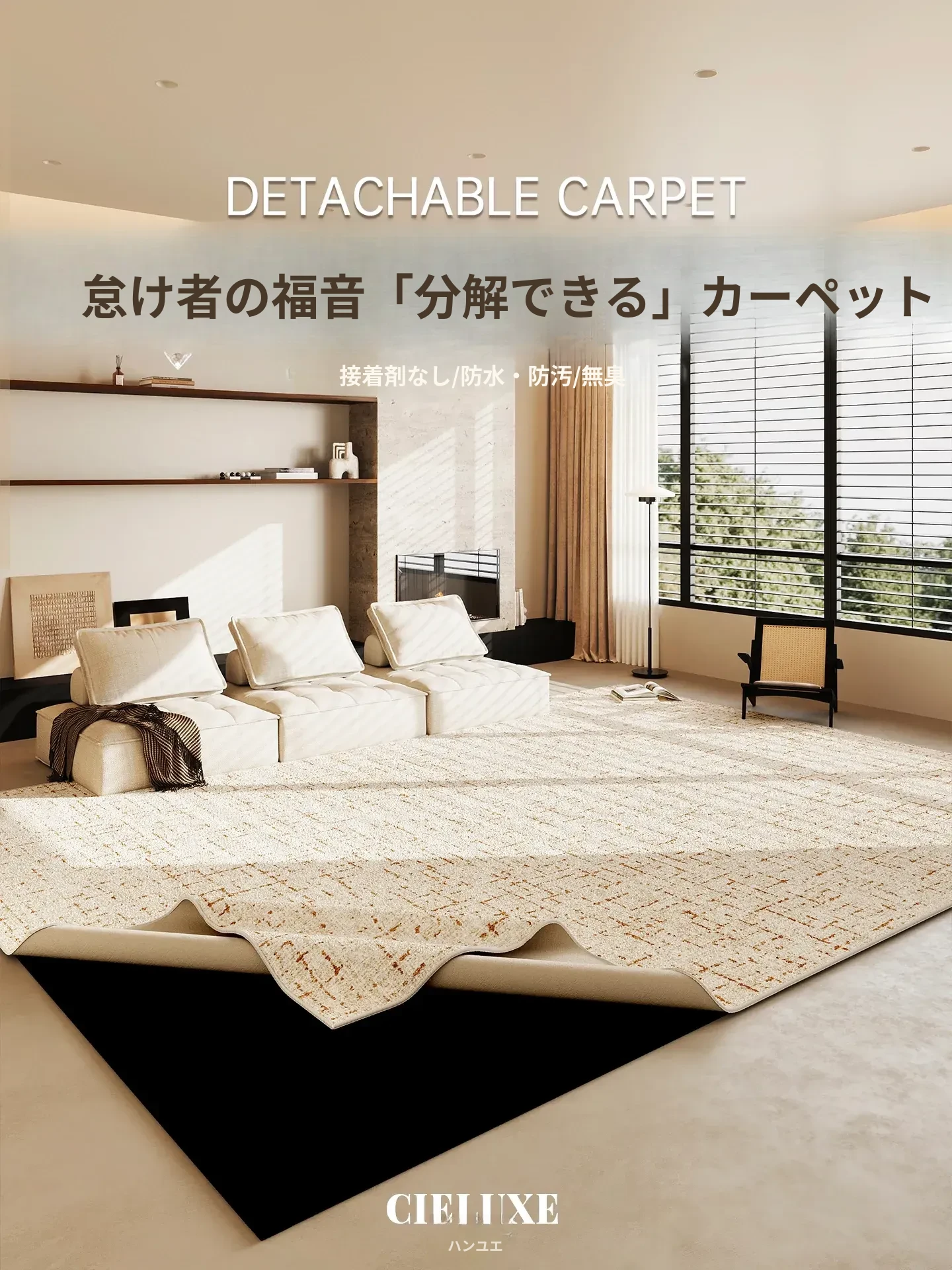 洗える二重構造!フレンチレトロデザインのリビングルーム用カーペット - ソファやコーヒーテーブルにぴったり!小粋なシャピレ風デザインで、寝室のベッドサイドにも最適。簡単に取り外し可能で、お手入れも楽々!