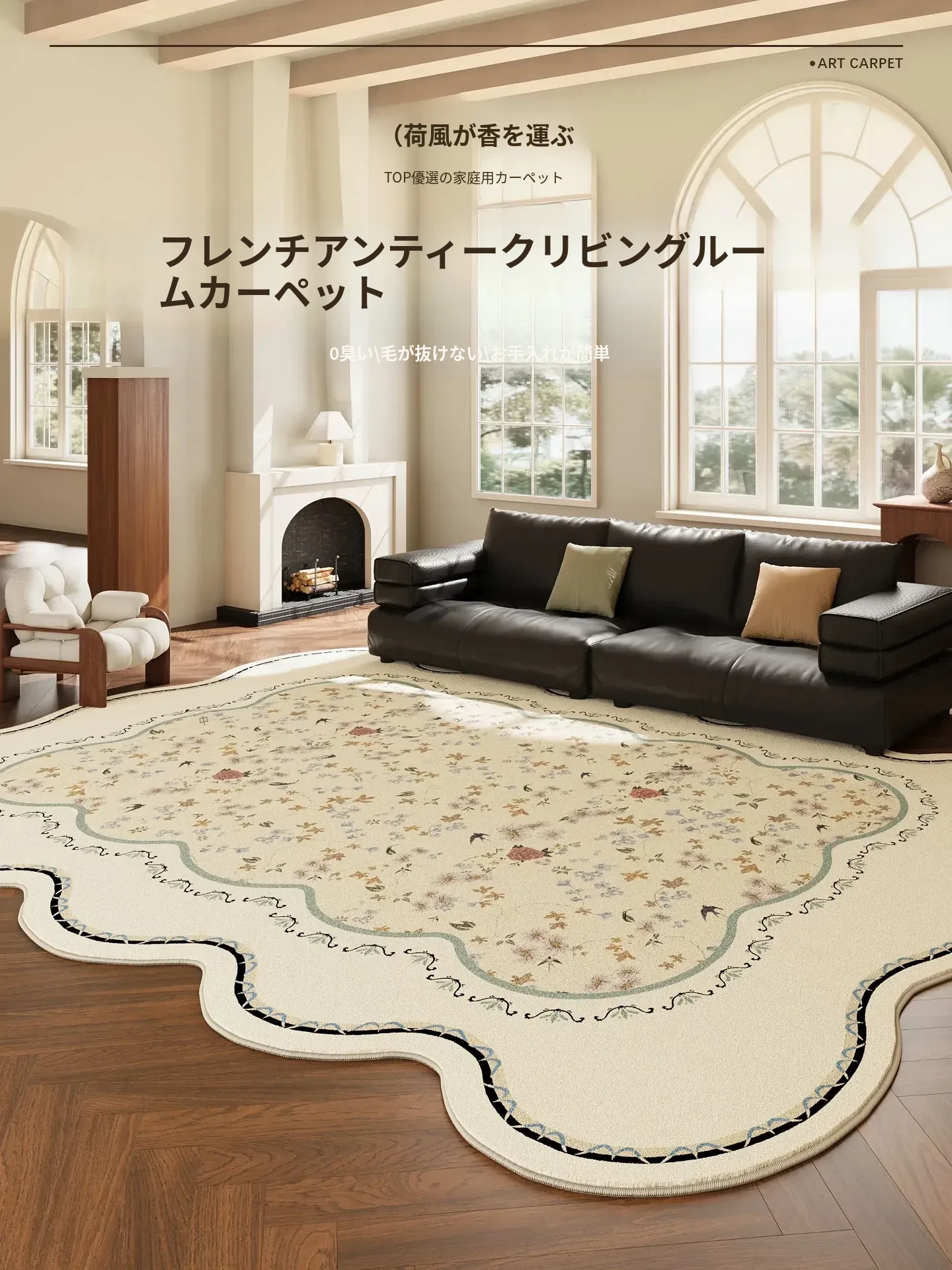 レトロなカーペットクッション|アンティーク風リビングソファ用フワフワマット|フレンチスタイル|防水・防汚の異形フットマット|個性的な不規則デザインでお部屋を彩る!
