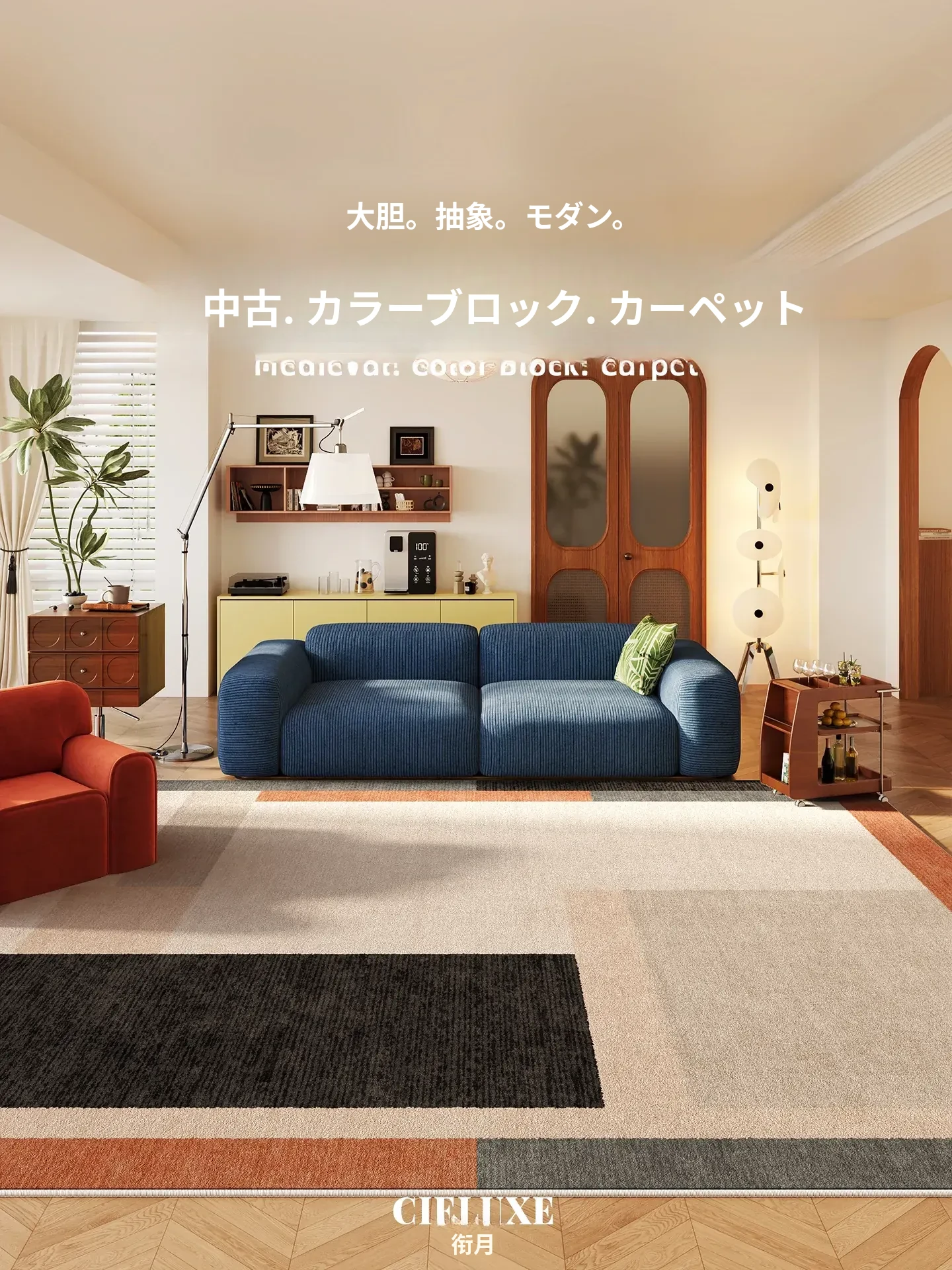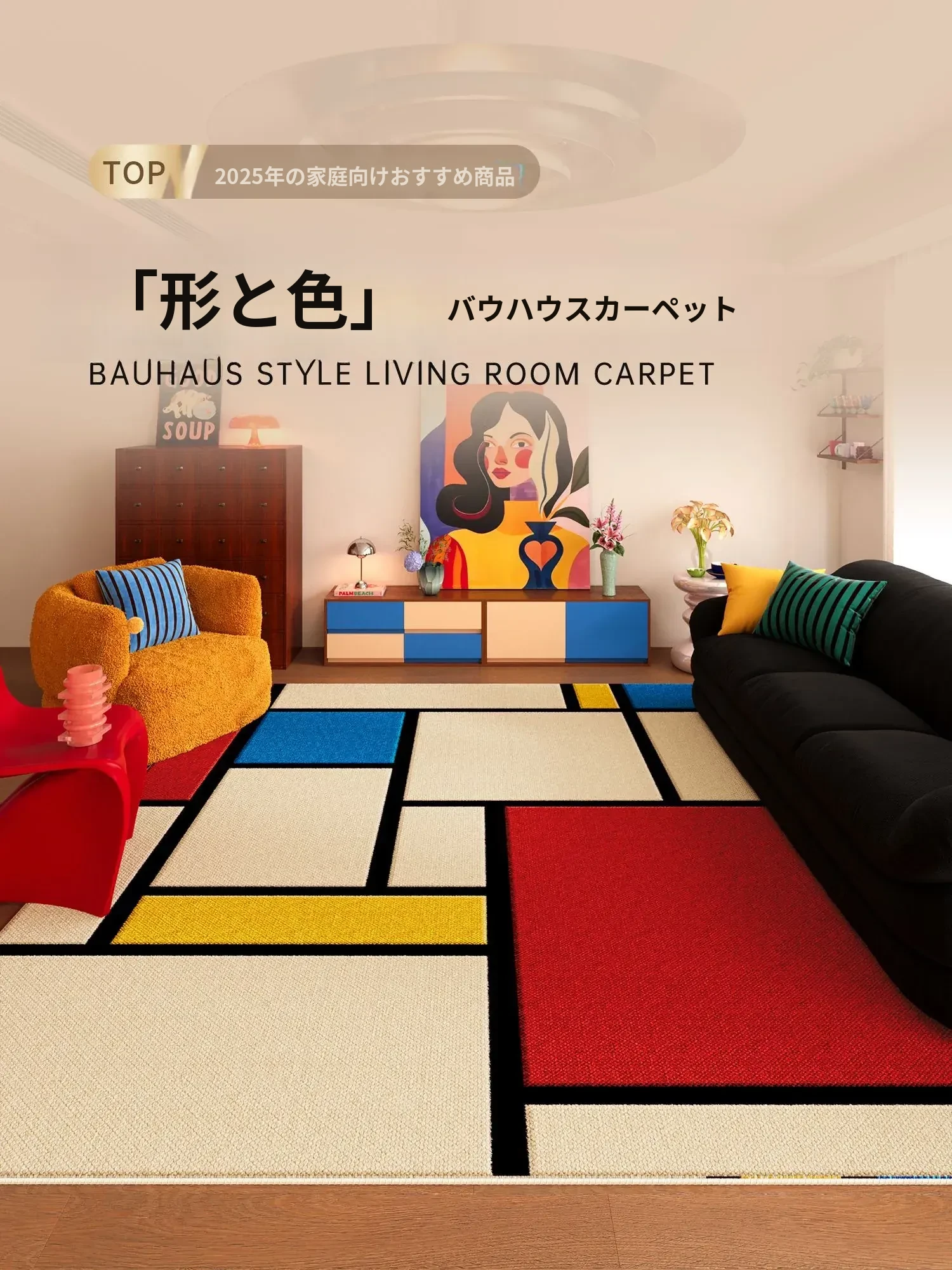 バウハウス風レトロカーペット|防水・汚れ防止|リビングソファやベッドサイドに最適|居心地の良い空間を演出する高品質ラグ
