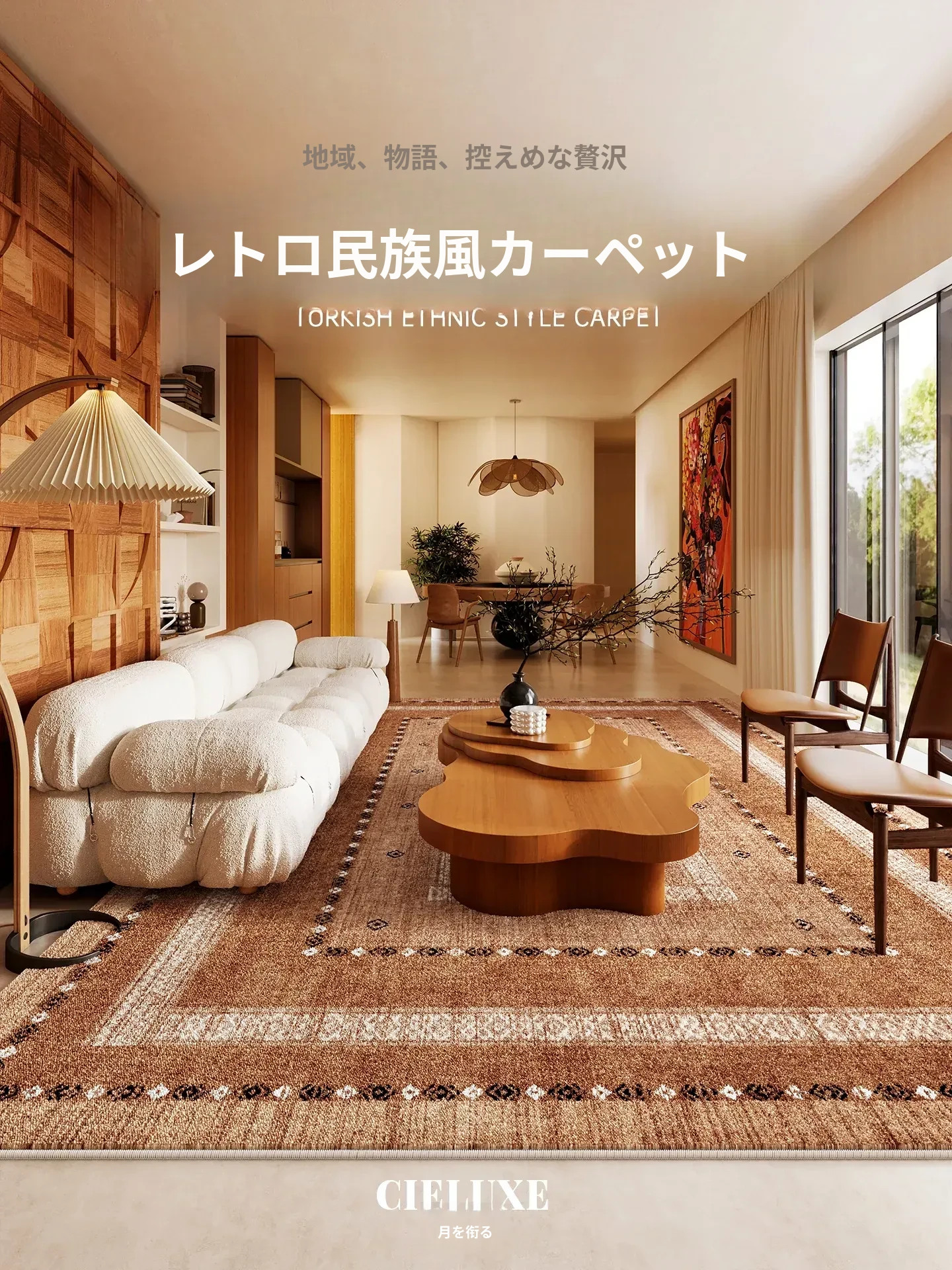 2026年新作!老钱风デザインのリビングカーペット - 洗濯不要&拭き取り可能!レトロなベッドサイドマットで、民族風の魅力を感じる一品。快適さとスタイルを両立した、あなたの空間を彩るアイテムです。