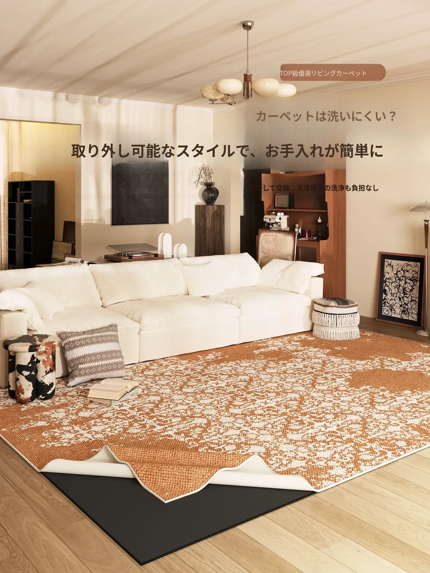 洗えるレトロデザインのカーペット!リビングや寝室にぴったりのフレンチスタイル、ソファやベッドサイドに最適。手軽に取り外して洗えるので、いつでも清潔を保てます。おしゃれで機能的なインテリアアイテムをぜひお試しください!