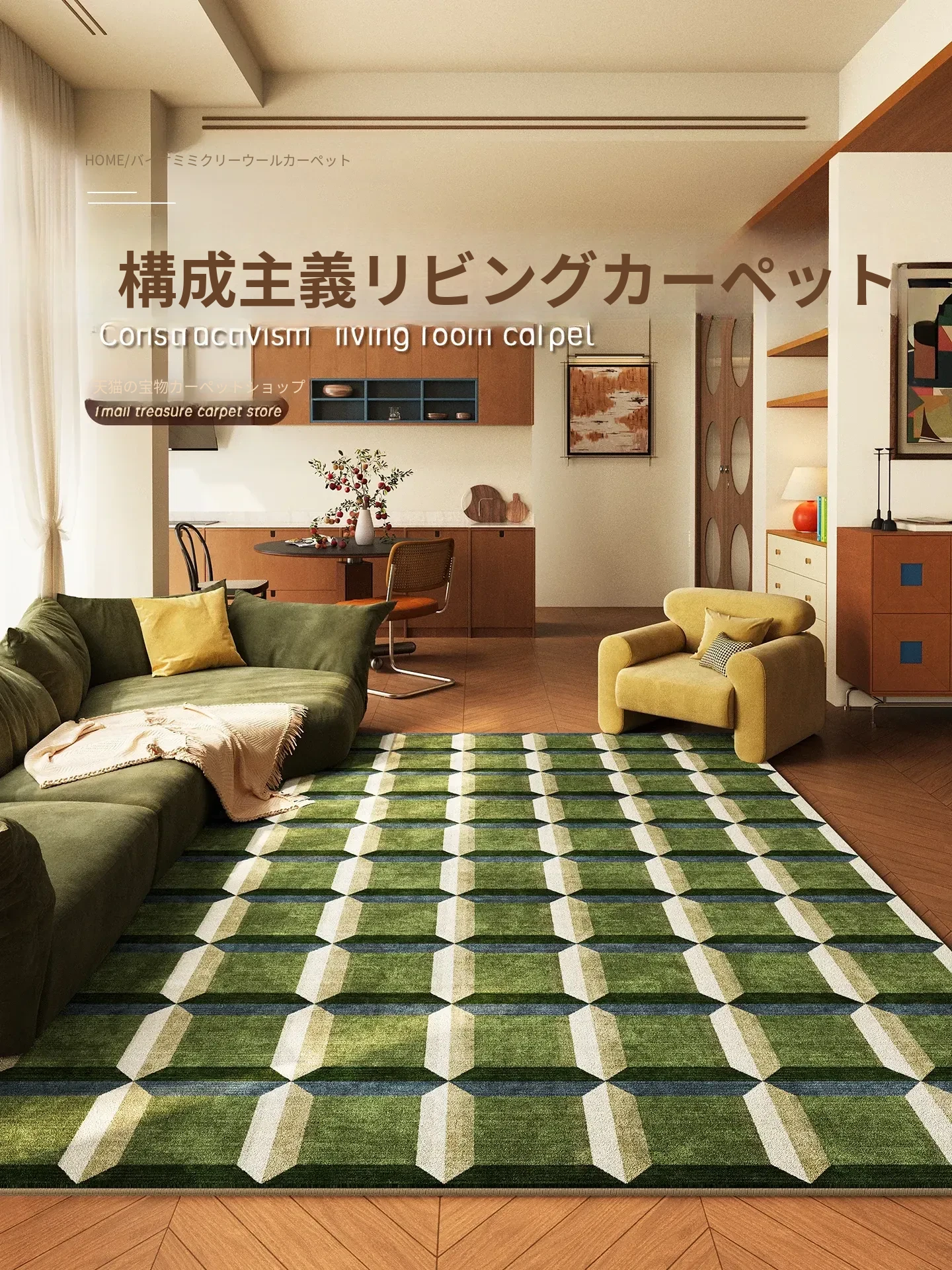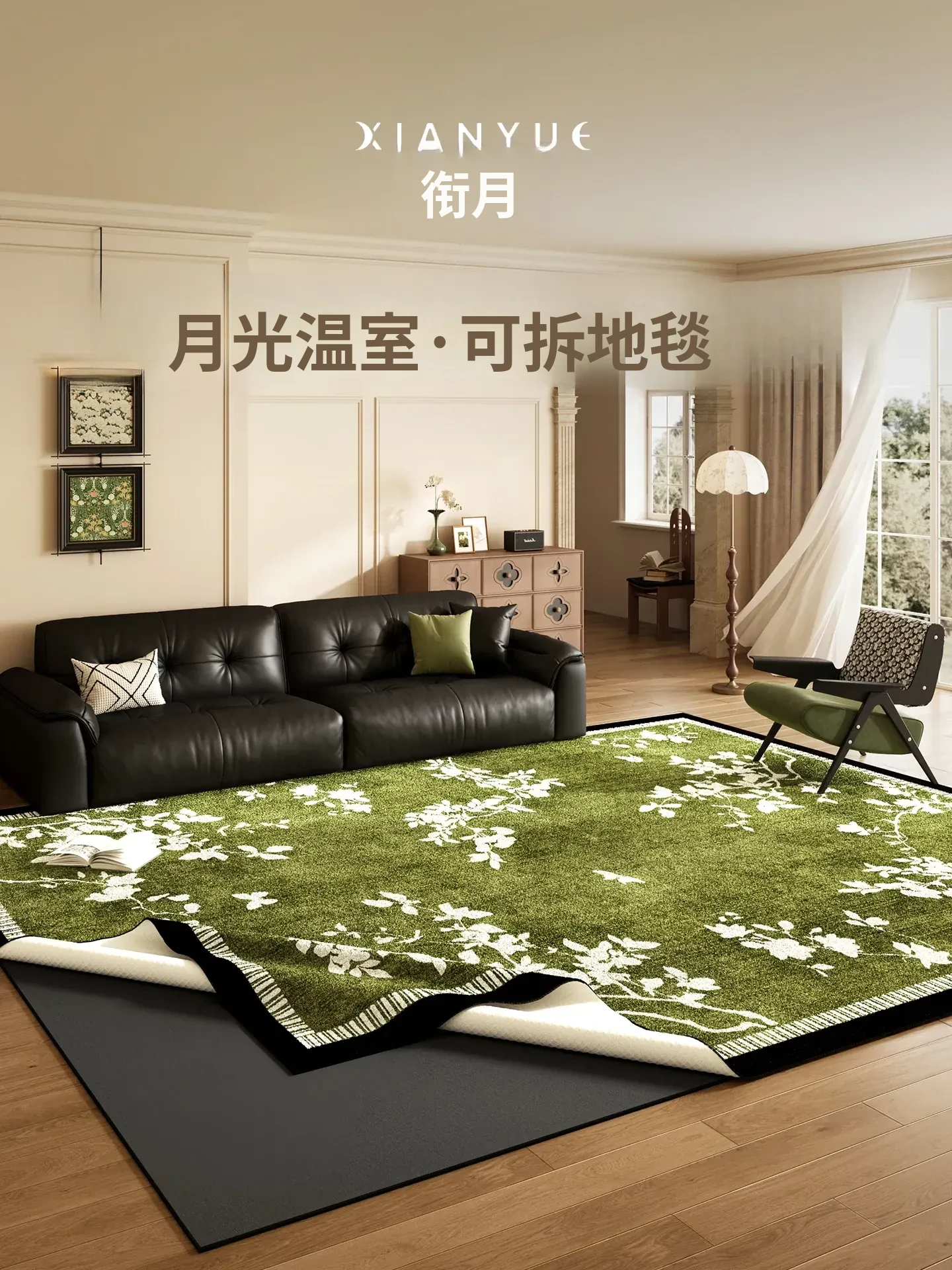 2026年新作!レトロな防水・汚れ防止機能付きグリーンカーペット。リビングやベッドサイドに最適なソファマット!おしゃれで快適な空間を演出し、古風な魅力をプラス。