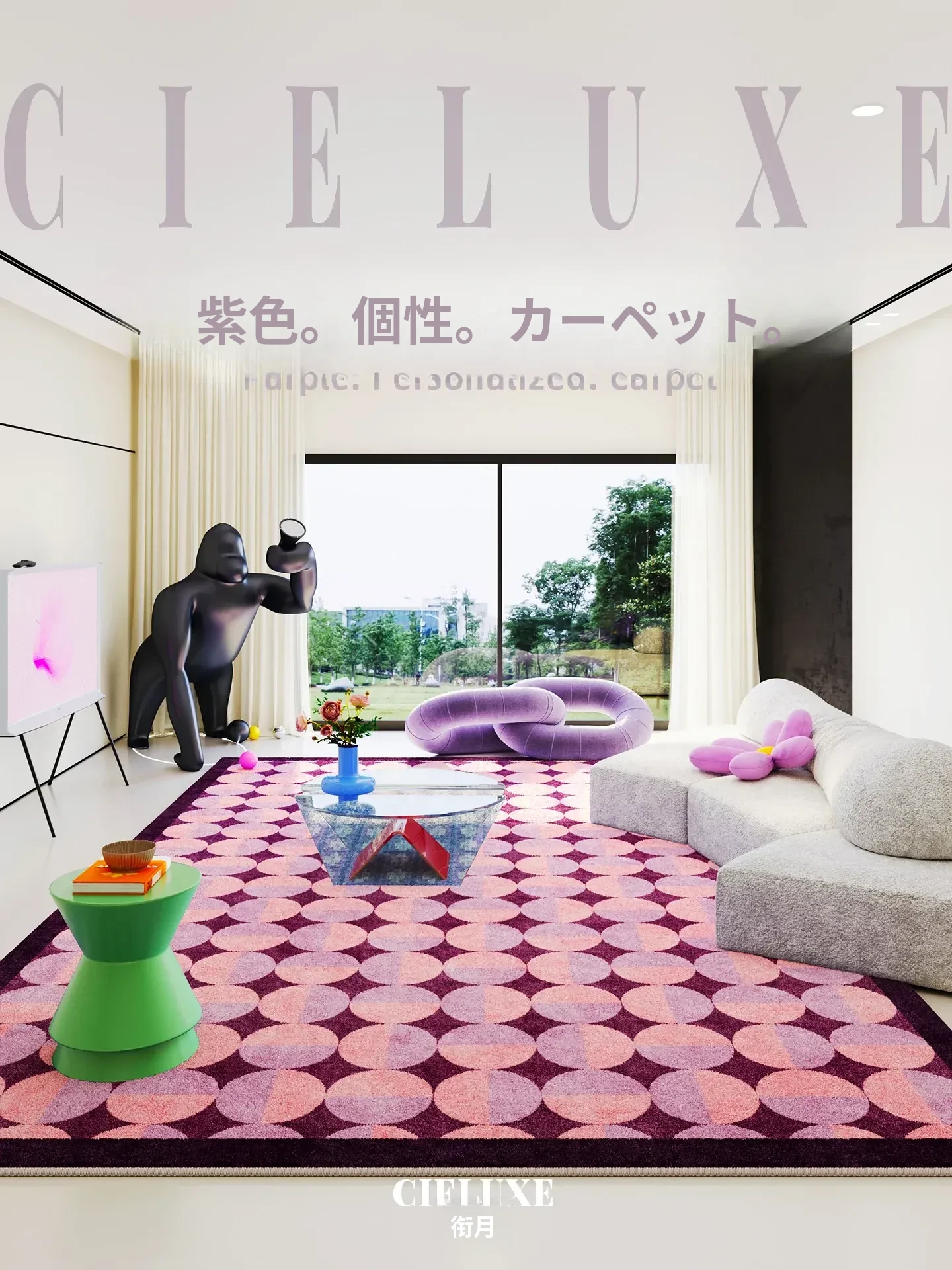 レトロな紫色のカーペット|おしゃれなリビングにぴったりなソファマット|洗わずに使える便利な足元マット|カラフルな部屋に最適なベッドサイドカーペット